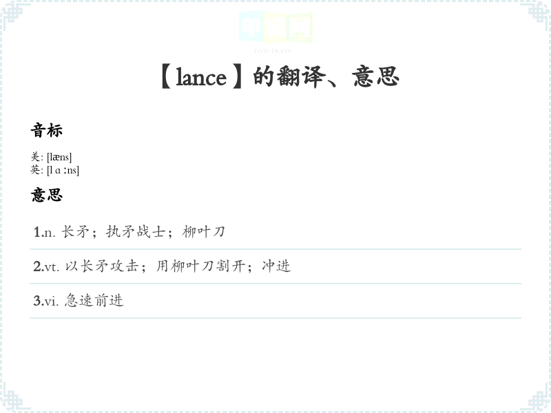【lance】是什么意思、字义解释