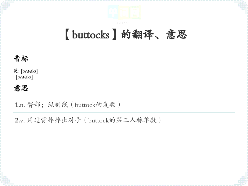 【buttocks】是什么意思、字义解释