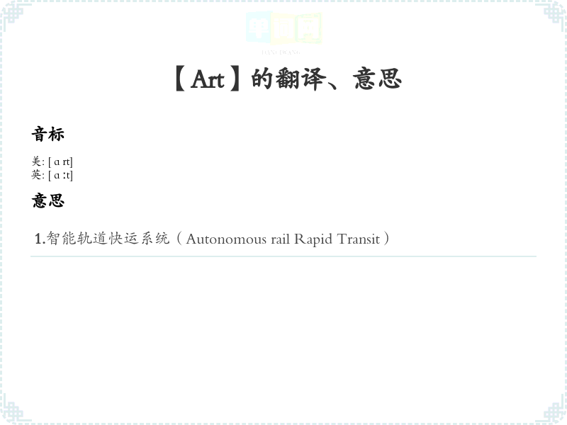- 词根记忆法:记住“art”与技能、创造力相关,可以帮助理解它在不同情境中的用法。