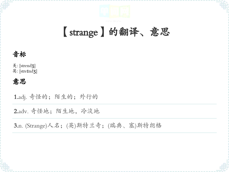 这种详细的分析可以帮助学*者更全面地理解和运用 strange 这个词。