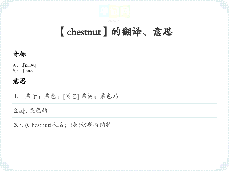 【chestnut】是什么意思、字义解释