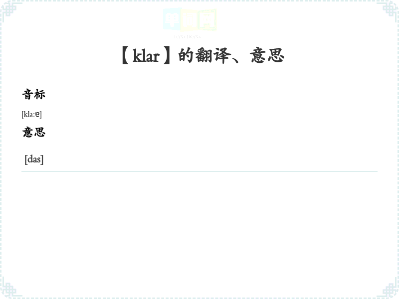 【klar】是什么意思、字义解释