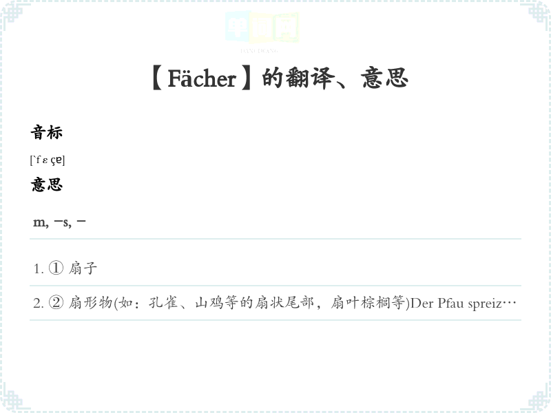 【Fächer】是什么意思、字义解释