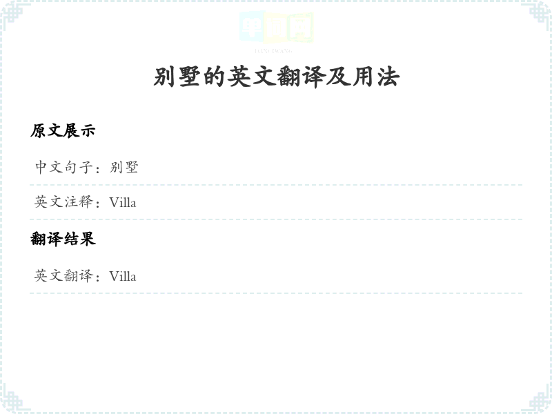 别墅的英文翻译及用法