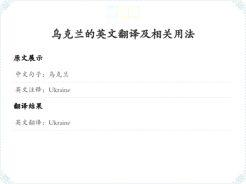 乌克兰的英文翻译及相关用法
