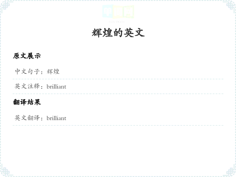 通过本篇文章的学习,希望你能够对"辉煌"这个词的翻译及相关用法有一个全面的理解,并在实际应用中灵活运用。