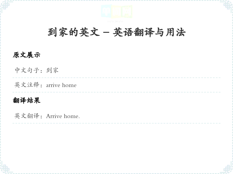通过本篇文章的学习,希望你能够对"到家"这个词的翻译及相关用法有一个全面的理解,并在实际应用中灵活运用。