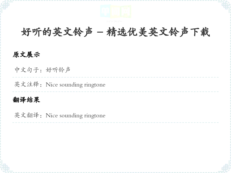 通过本篇文章的学习,希望你能够对"好听铃声"这个词的翻译及相关用法有一个全面的理解,并在实际应用中灵活运用。