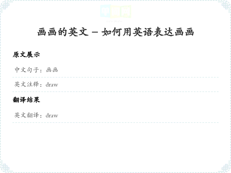 通过本篇文章的学习,希望你能够对"画画"这个词的翻译及相关用法有一个全面的理解,并在实际应用中灵活运用。