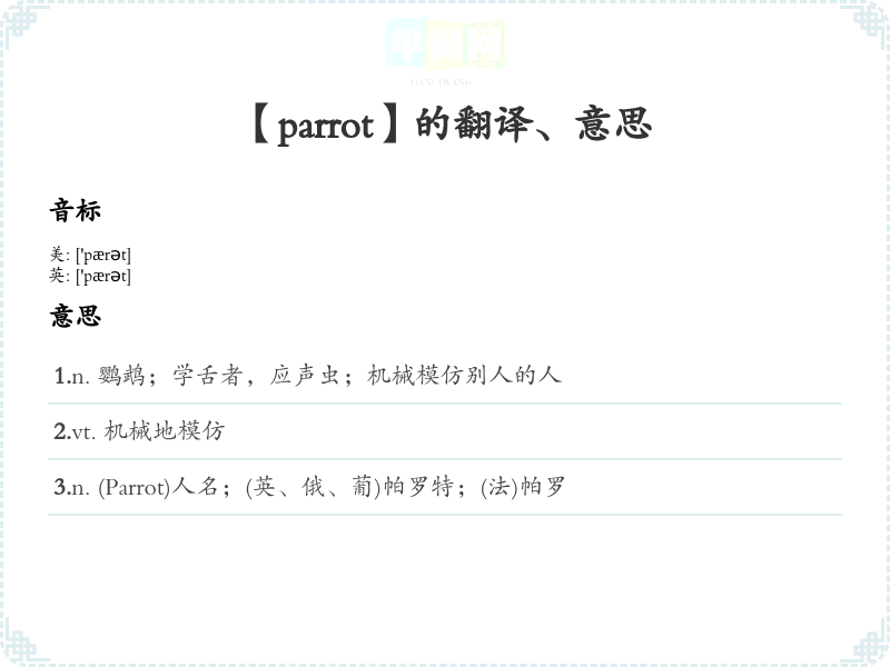 【parrot】是什么意思、字义解释
