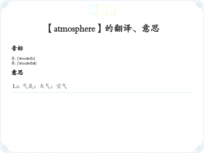 【atmosphere】是什么意思、字义解释