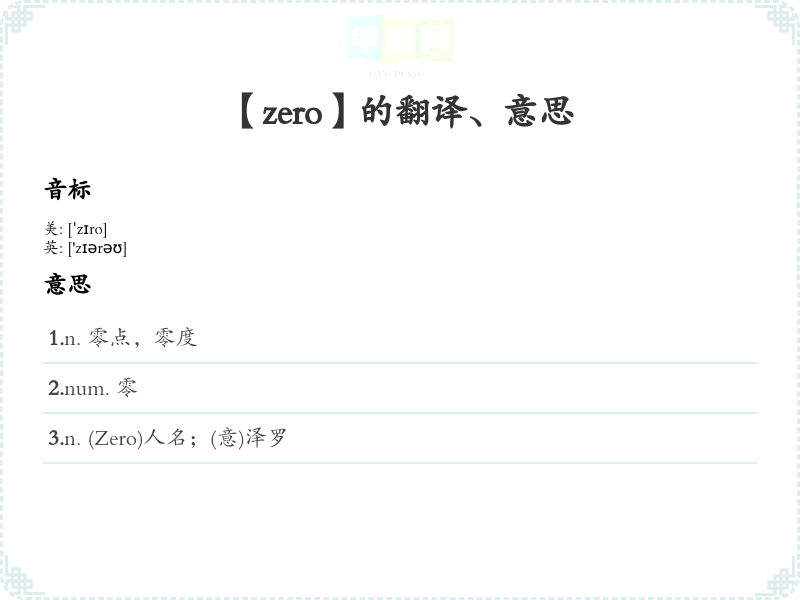 【zero】是什么意思、字义解释