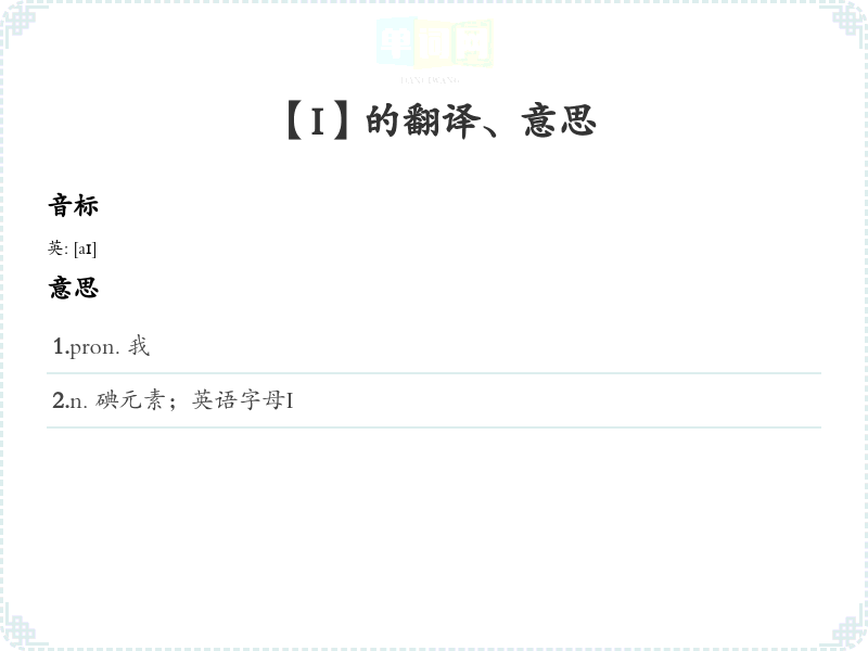 通过以上的分析,可以更全面地理解和应用这个单词“I”。