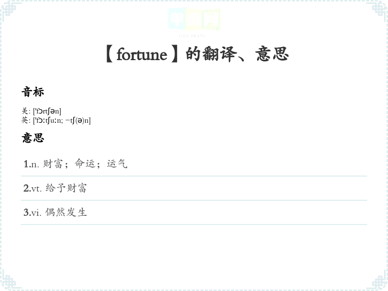 英文单词学*与分析:[fortune]