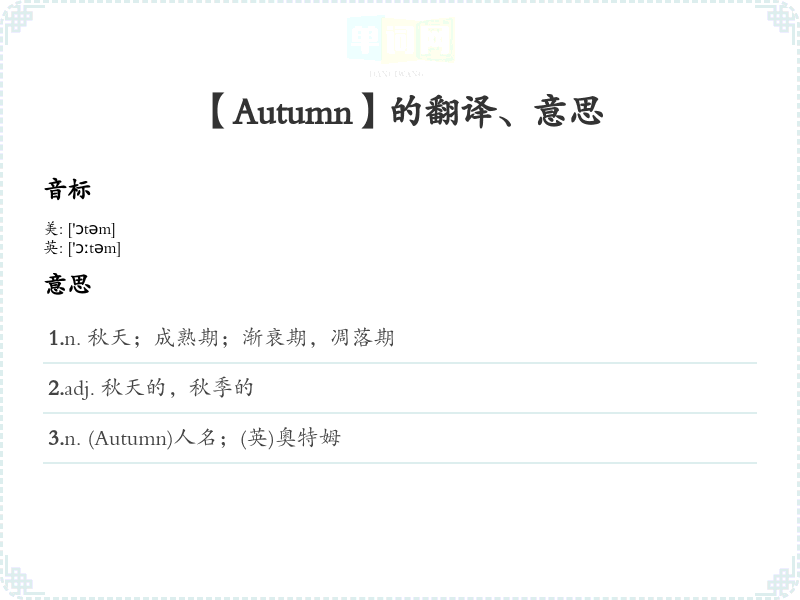 【Autumn】是什么意思、字义解释