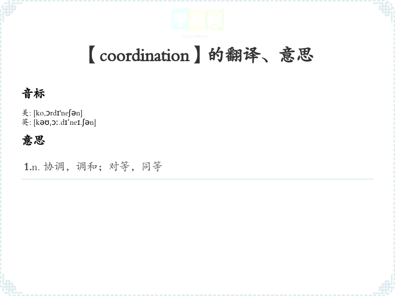 - 因此,“coordination”字面意思为“共同的安排”或“共同的顺序”。