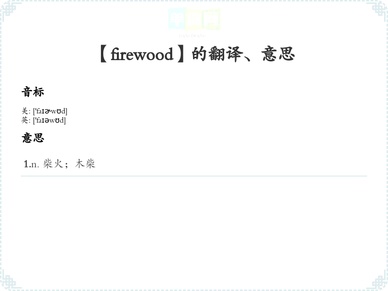 - 音标:/ˈfaɪərˌwʊd/