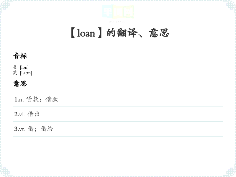 【loan】是什么意思、字义解释