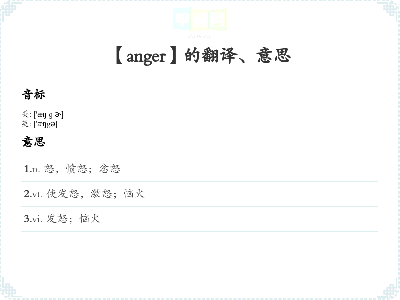 【anger】是什么意思、字义解释