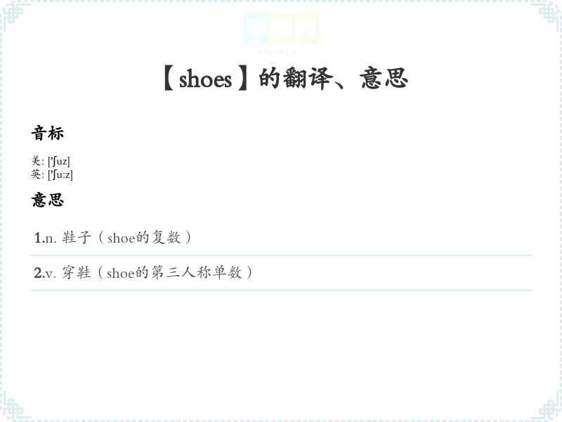【shoes】是什么意思、字义解释