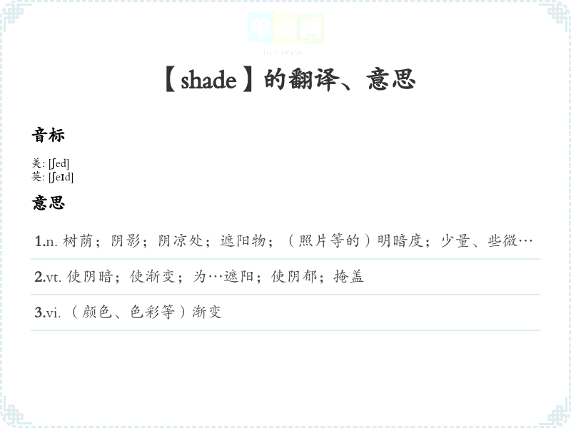 英文单词学*与分析:[shade]