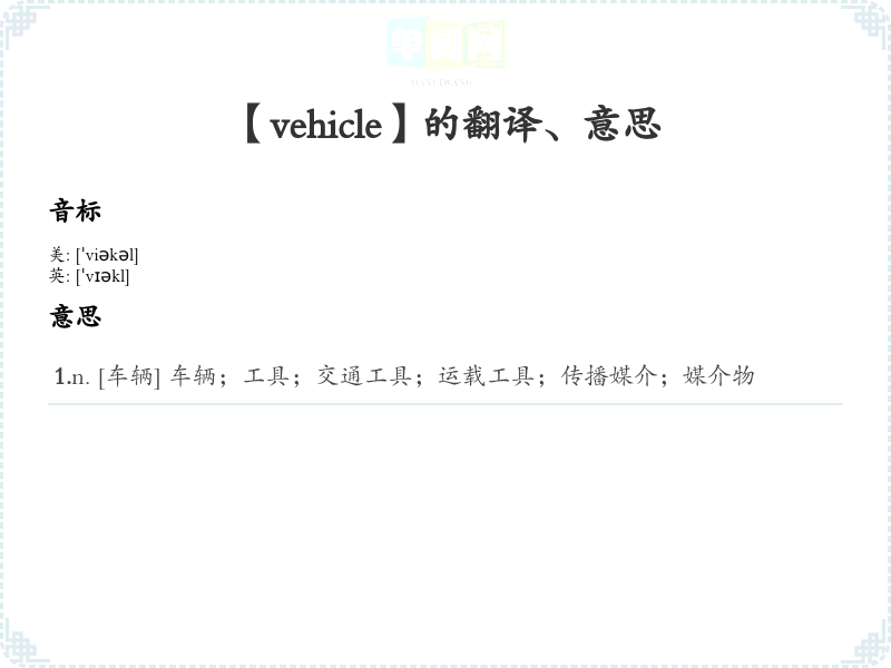 【vehicle】是什么意思、字义解释