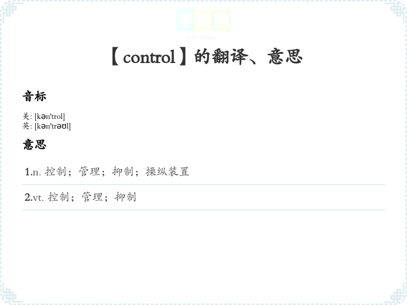 - 可以尝试将音标分解为“con”(和)+“trol”(控制)来帮助记忆。