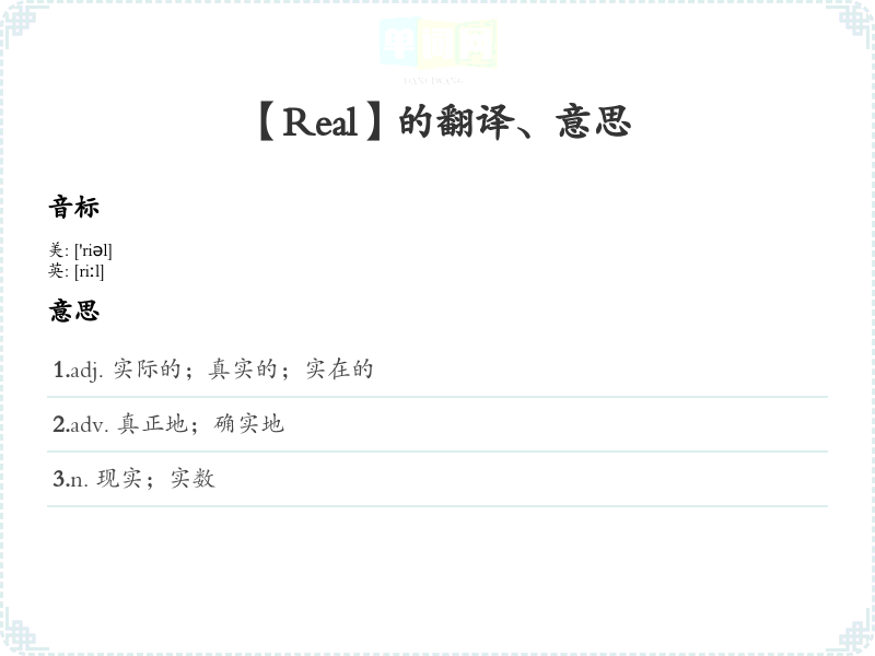 【Real】是什么意思、字义解释