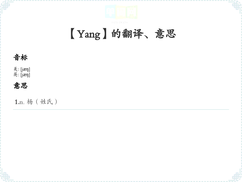 通过以上的分析和学*方法,可以更深入地理解“Yang”这个词的含义及其在不同语境中的应用。