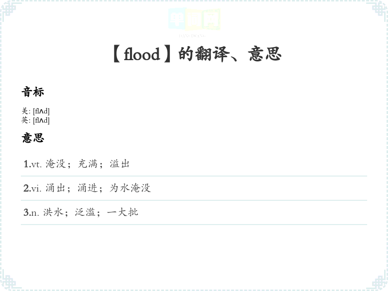 【flood】是什么意思、字义解释